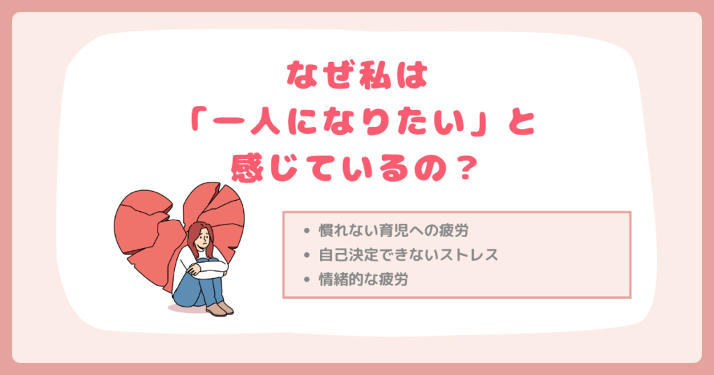 これにより、「少しでも一人の時間を持ちたい」という思いが強まってしまいます。