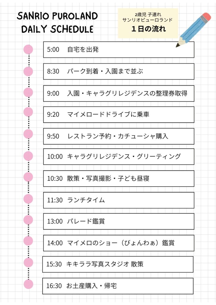 子連れサンリオピューロランドのモデルコース【1日の流れ】