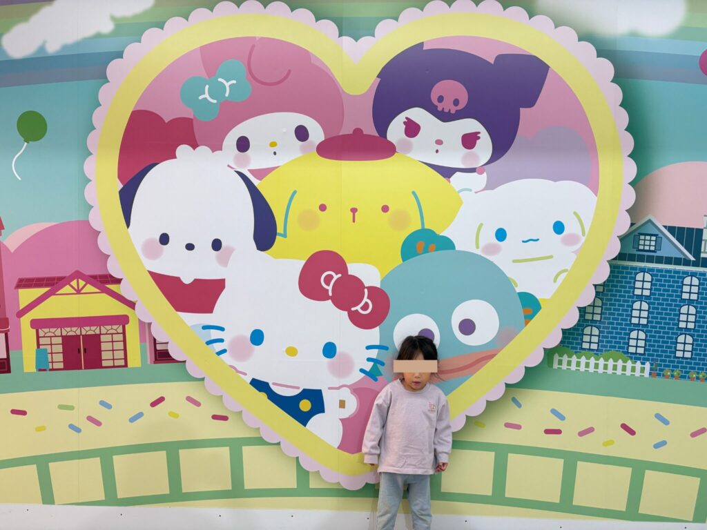 目の前に、大きなサンリオの看板があって、サンリオ大好きの娘は大喜び!