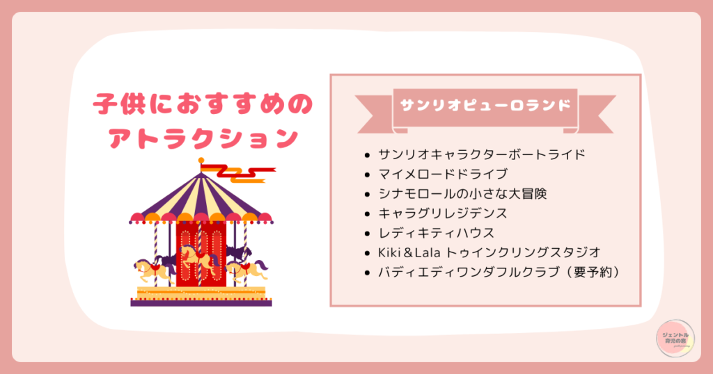 今回は、サンリオピューロランドに年4回以上は行っている私が、2歳の娘と楽しめるアトラクションについて徹底解説していきます。