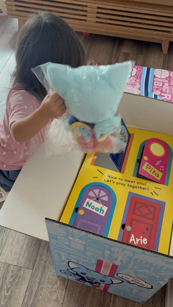 映像内によく登場する「エディ」と「ピタ」は子どもが好きで、ぬいぐるみも気に入って一緒におままごとをしたりして遊んでいますが、他の3体はほとんど使っていないので、クローゼットを占領しています。