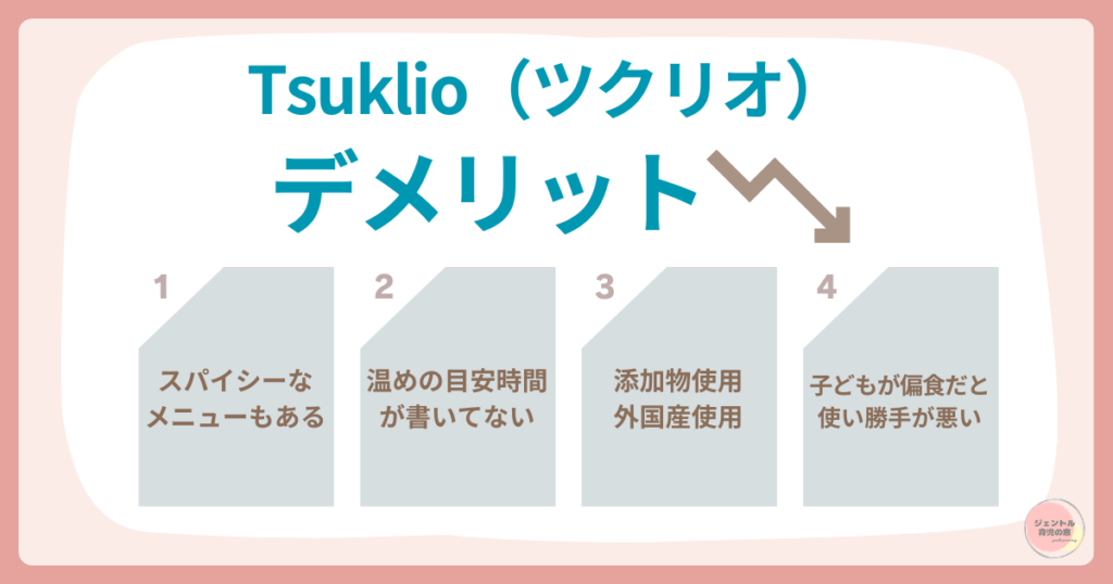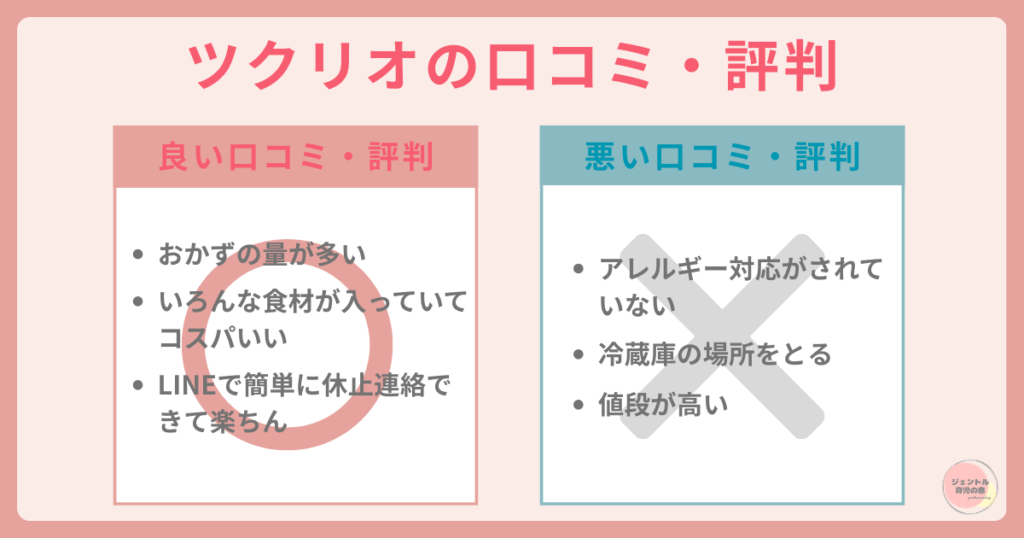 | 〇 親子で同じ食事が摂れるので楽しい食卓が囲める | ✕ メニューが選べないので、子どもが食べられるメニューが届くかわからない |